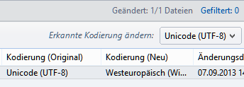 automatisch erkannte Kodierung für die ausgewählten Listeneinträge korrigieren.